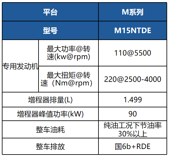 滿足乘用(yòng)車(chē)五階段和(hé)國(guó)6b+RDE排放(fàng)法規,熱(rè)效率42%以上(shàng)。M15NTDE發動機(βjī)已經完成全工(gōng)裝機(jī)驗證,M15NTDE發動機(jī)為(wèi)面向乘用(yòn'g)車(chē)市(shì)場(chǎng)的(de)新能(néng)源專用(yòng)發動機(jī),已搭載T3高(gāo)端SUV。
